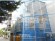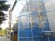 室外雙貨梯并行安裝。雙梯共用整體外圍,PC板封邊,內部彩藍色框架,黃色配重門,貨